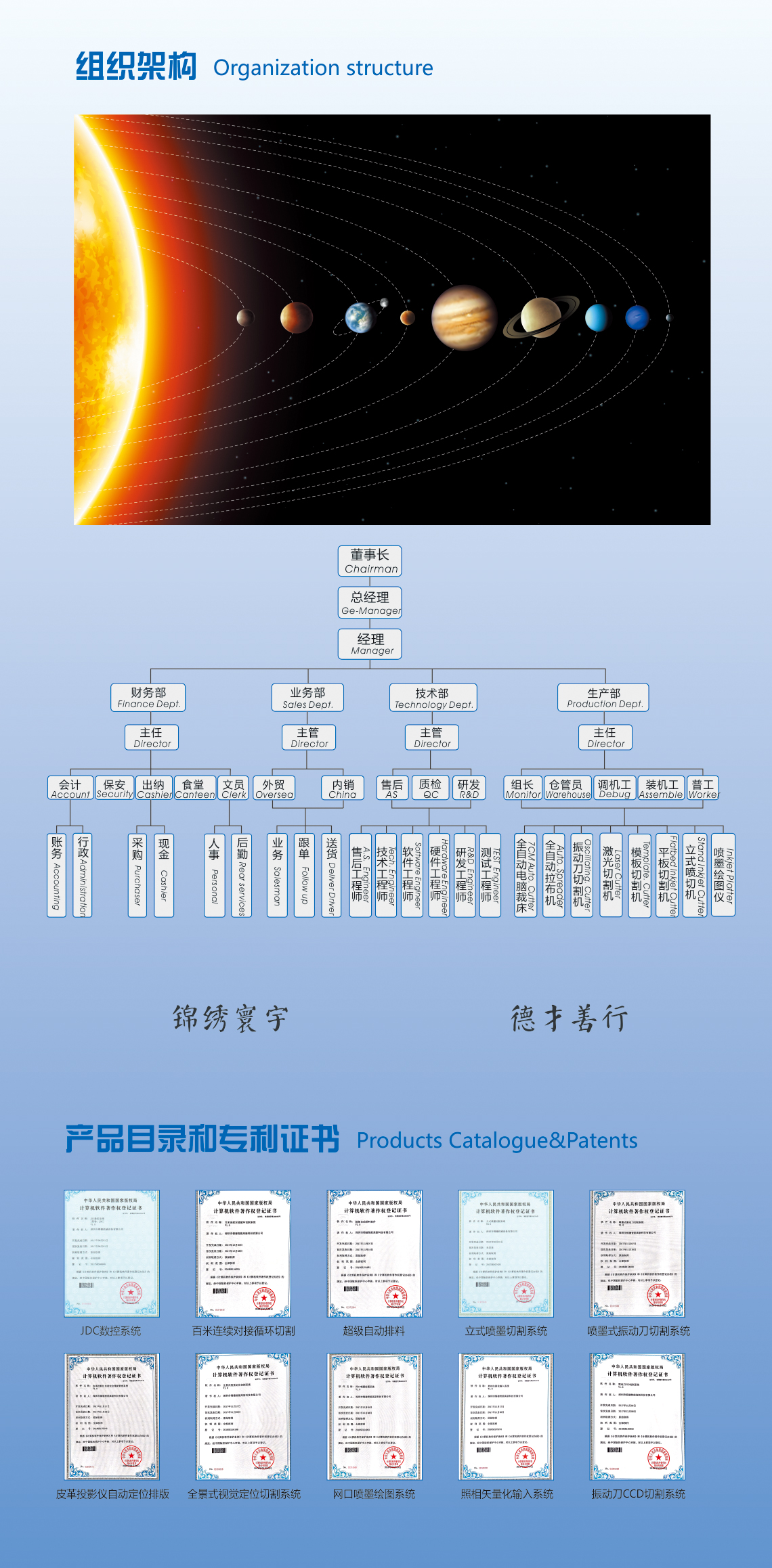 - All kinds of apparel fabrics, car seat, furniture sofa, shoe bags and other industries widely print marking, cutting and circular feed CCD after correction for the integration of intelligent high-end jet cutting robot, usually with two roll of paper, one for paper, one for material.