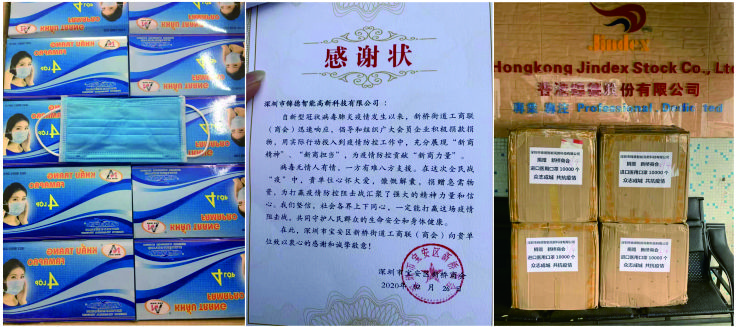 開年以來,錦德公司積極配合政府工作,積極響應(yīng)政府號令,深圳市錦德智能高新科技有限公司以柔性材料切割提供完整解決方案的產(chǎn)品研發(fā)及銷售,公司總經(jīng)理劉明軍先生表示:這個(gè)新型冠狀病毒肺炎出現(xiàn)的時(shí)候,我第一時(shí)間想到是我們應(yīng)該為社會做些事情。由于現(xiàn)在是在特殊時(shí)期,國內(nèi)口罩貨源緊張,立刻聯(lián)系國際友人,從國外緊急采購近萬個(gè)越南進(jìn)口醫(yī)用口罩,援助給新橋商會及新橋街道辦,為新橋街道的疫情防控工作助力,以實(shí)際行動踐行企業(yè)家的社會責(zé)任與擔(dān)當(dāng),盡微薄之力!